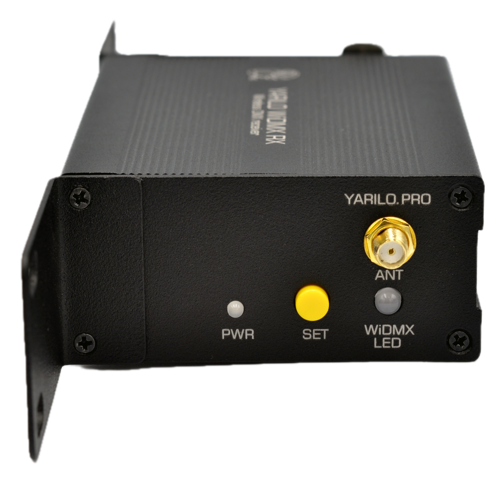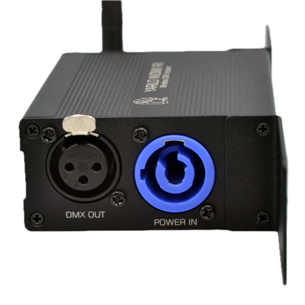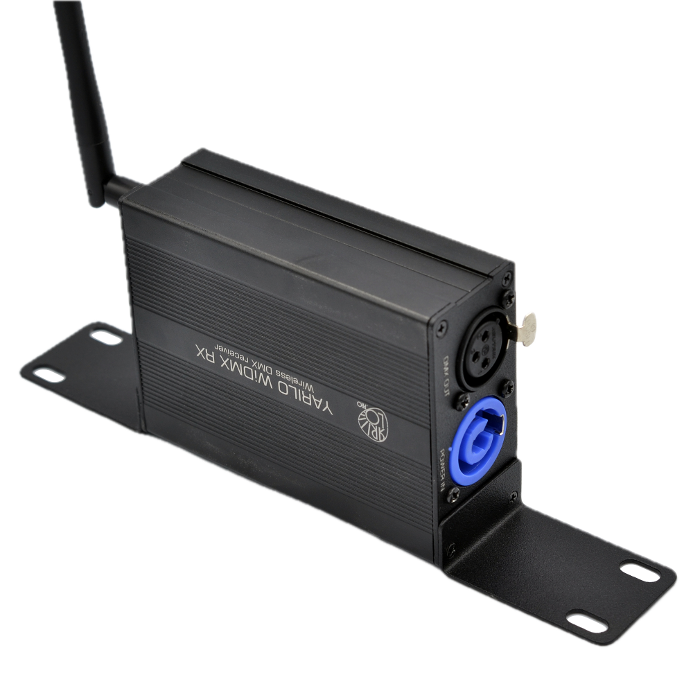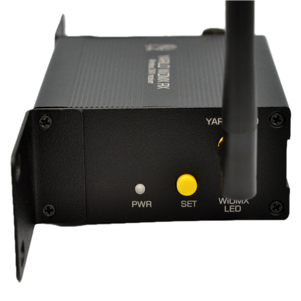 ЯРИЛО WiDMX RX предназначен для приема по радиоканалу диапазона 2,4ГГц сигнала от беспроводного передатчика DMX, который данное устройство передает через кабель на световые приборы по DMX. Для передачи радиосигнала используется беспроводной передатчик ЯРИЛО WiDMX TX.